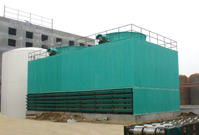 本系列冷卻塔是依靠頂部的電機風(fēng)機,強行把塔外的冷空氣,經(jīng)塔下部的進(jìn)風(fēng)百葉窗吸入塔內(nèi);熱水經(jīng)高效低壓離心霧化裝置向上方噴射霧化,與進(jìn)塔的空氣同向上升,并進(jìn)行熱交換,霧滴上升到一定高度后靠自重自然下落,這時又與正在上升的冷空氣相遇再次進(jìn)行熱交換,濕熱空氣由風(fēng)機排出塔外,冷卻水集中后進(jìn)入積水池。