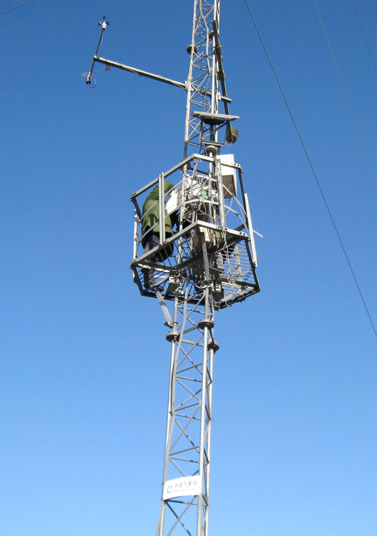 測(cè)風(fēng)塔架設(shè)在風(fēng)電場(chǎng)場(chǎng)址內(nèi),多為絎架式結(jié)構(gòu)和圓筒式結(jié)構(gòu),采用鋼絞線斜拉加固方式,高度一般為10-150米。在塔體不同高度處安裝有風(fēng)速計(jì)、風(fēng)向標(biāo)以及溫度、氣壓等監(jiān)測(cè)設(shè)備。可全天候不間斷地對(duì)場(chǎng)址風(fēng)力情況進(jìn)行觀測(cè),測(cè)量數(shù)據(jù)被記錄并存儲(chǔ)于安裝在塔體上的數(shù)據(jù)記錄儀中。