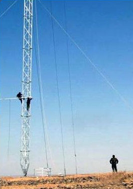 產品簡述: 設計基本風壓為 0.45KN/m 2 ,塔基占地面積為 2 m 2 左右,高度一般為 15m-36m ,按每 3m 一段用外包鋼連接,拉線塔塔身一面的橫連桿作爬梯使用,另一面橫連桿用于固定饋線, 1-2 個直徑為 2.2m 的圓形平臺,天線支架伸出長度可達 1.5m ,方位角度可靈活調整,該塔型外觀新穎,受力合理,塔體重量輕,施工簡便周期短,是一種性能良好,經濟實用的通信塔型,特別適用[1]于城市(市區(qū))及風景區(qū)等地。