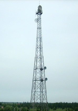 微波塔又稱為微波鐵塔、微波通信鐵塔,多建于地面、樓頂、山頂。微波塔承風能力強,塔架多采用角鋼材料輔以鋼板材料,也可全部采用鋼管材料組成,塔架各構件之間采用 螺栓連接,全部塔架構件在加工完畢后經過熱鍍鋅防腐處理。角鋼鐵塔由塔靴、塔身、避雷塔、避雷針、平臺、爬梯、天線支架、饋線架及避雷引下線等部件組成。